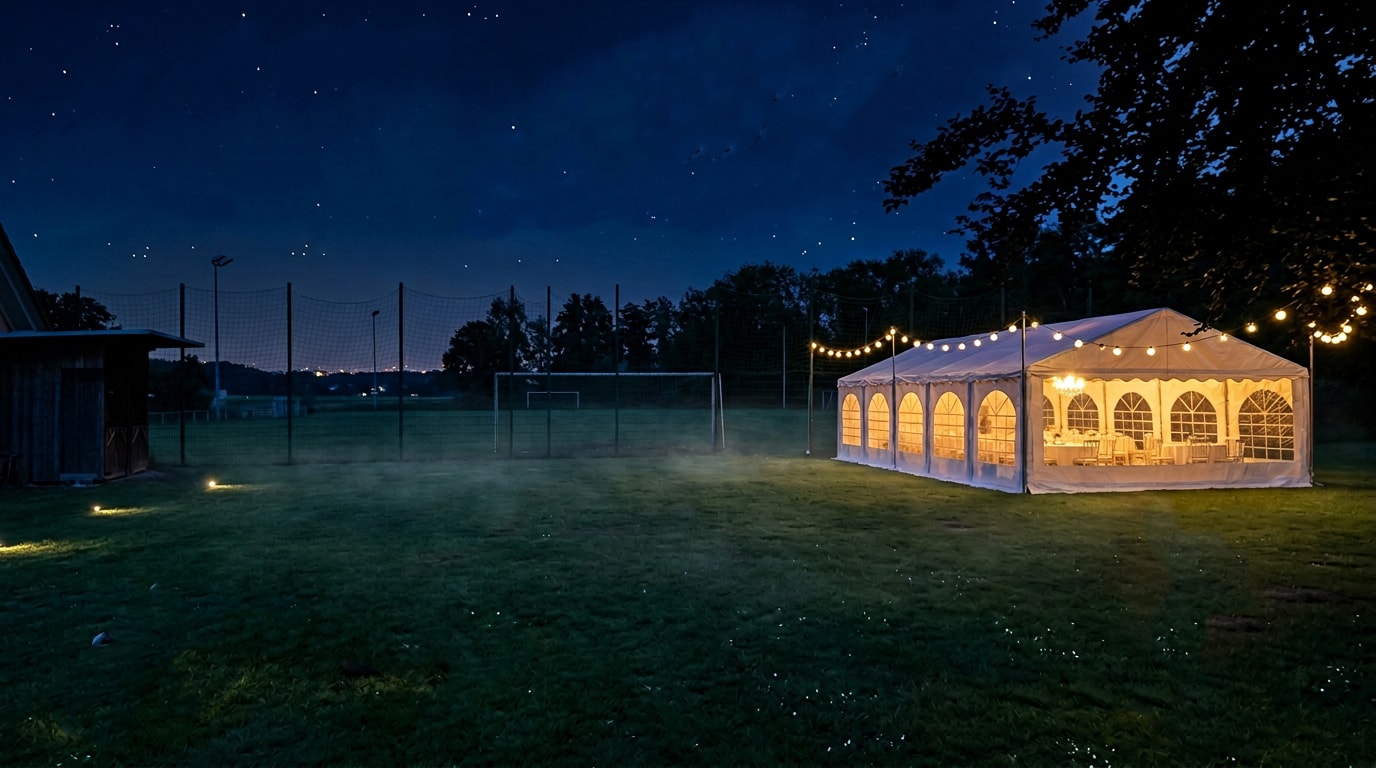 Sommerliches Oktoberfest direkt am Sportplatz Zech – mit Live-Band, zünftiger Stimmung und gut 80 Gästen unterm Festzelt. Vom blanken Stahlgestell bis zur feierfertigen Location in kürzester Zeit.